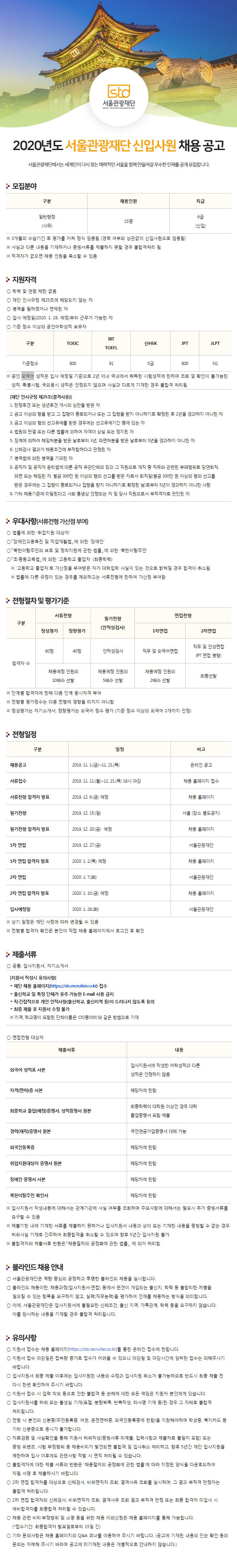 [외국어 우대] 서울관광재단 2020년도 신입사원 채용