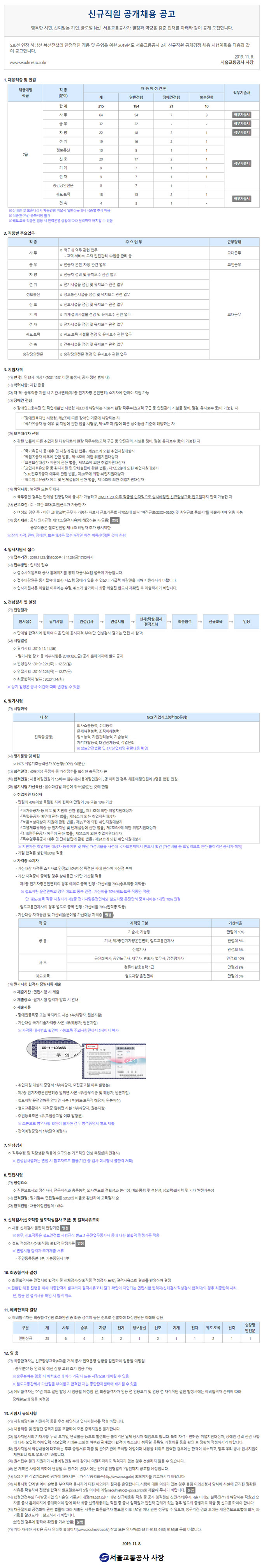 [정보 제공] 서울교통공사 신규직원 공개채용 공고