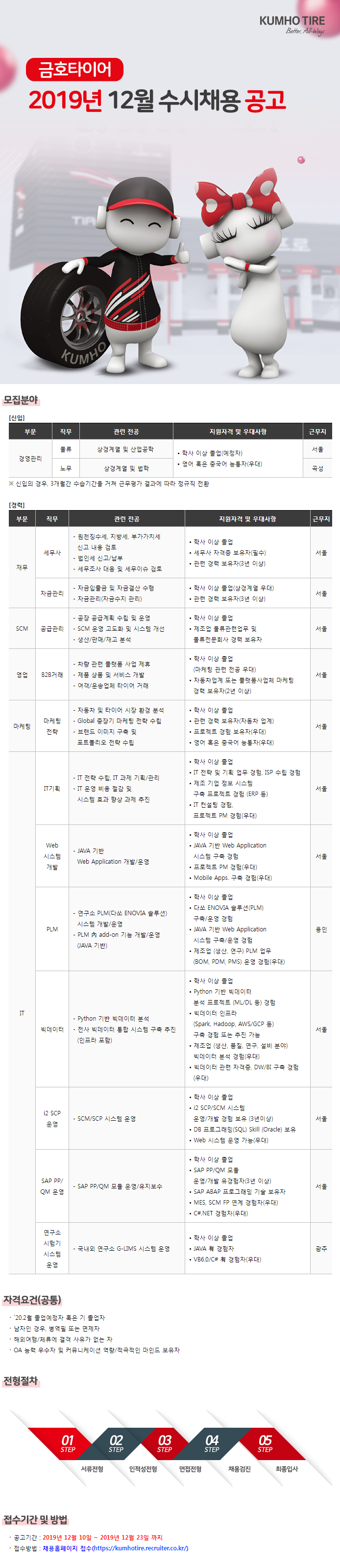 [정보 제공] 금호타이어 2019년 12월 수시채용 공고