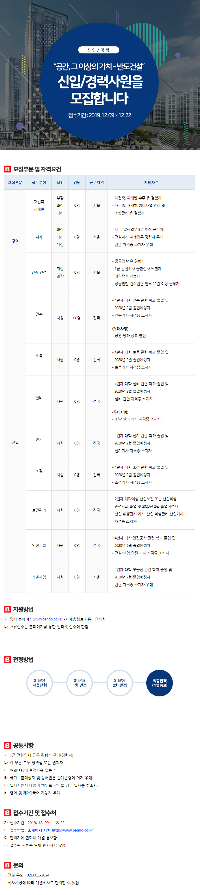 [정보 제공 반도건설 반도건설 신입/경력사원 모집