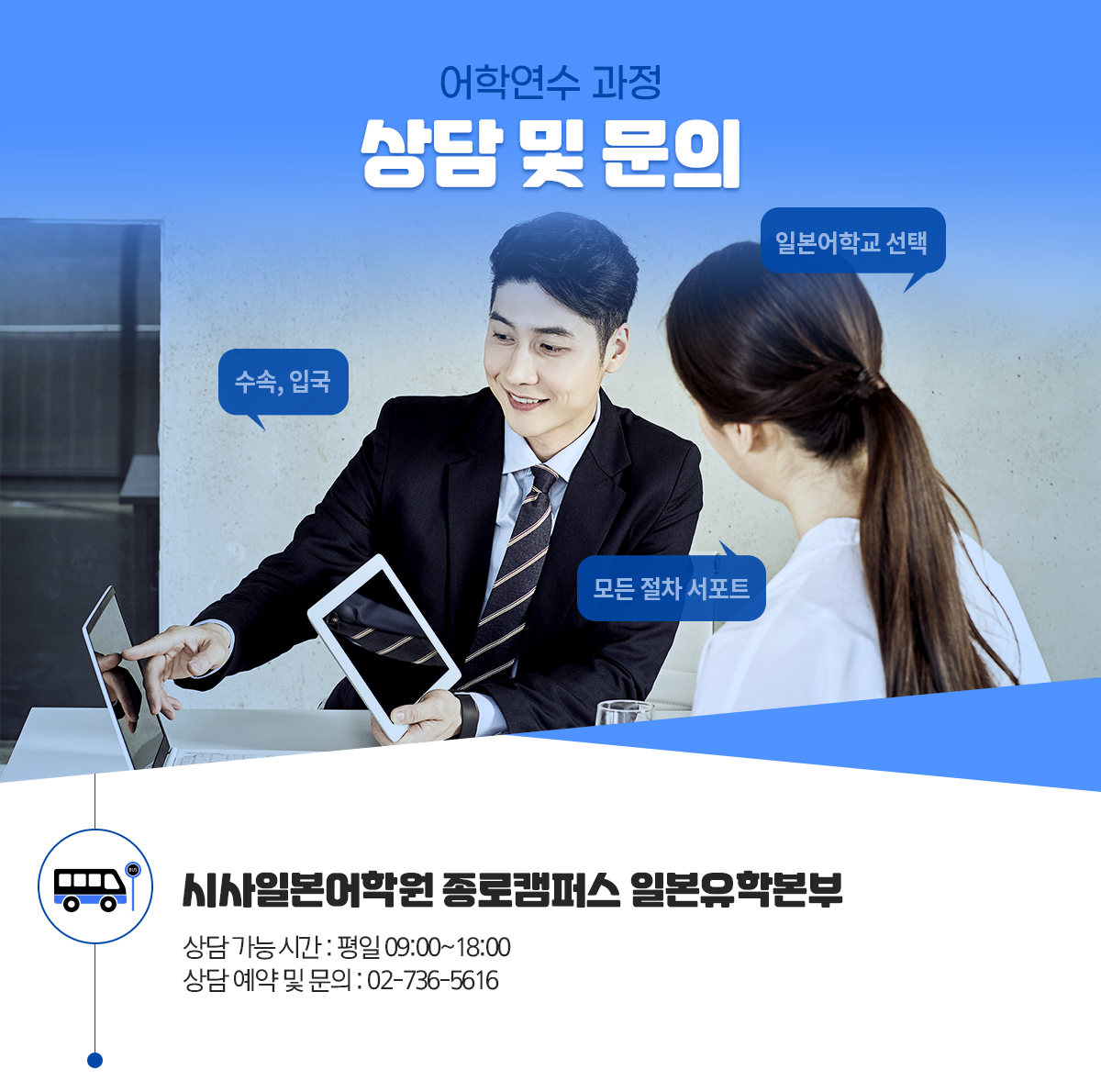 일본어학교 선택부터 수속, 입국까지 모든 절차를 서포트하겠습니다!