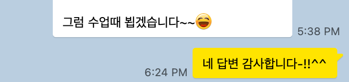 문승현 선생님의 수업을 들은지 3개월이 되어 후기를 남깁니다. 그동안 3개월이 어떻게 갔는지 모르게 편안하고 즐겁게 수업이 진행되었던 것 같아요. 늘 학생들의 어려움을 이해해 주시고, 격려도 많이 해 주시고, 적극적으로 도움을 주시는 좋은 선생님 덕분에 일본어 공부가 힘들지 않고 재미있습니다. 신문 속 다양한 시사 지문, 그리고 인터넷 상에서의 댓글처럼 실생활에서 쓰이는 실전 어휘와 표현들을 매일 접할 수 있는 것이 이 수업의 가장 큰 특징이자 장점인 것 같아요. 독해와 회화를 골고루 공부하고 싶으신 모든 분들께 추천드립니다. 첨부 이미지는 선생님과 저의 카톡 내용을 일부 캡쳐한 것입니다. 제가 일본어를 공부하다가 궁금한 것들을 여쭤보면 항상 친절히 알려주세요. 문승현 선생님의 수업 강추합니다! |
