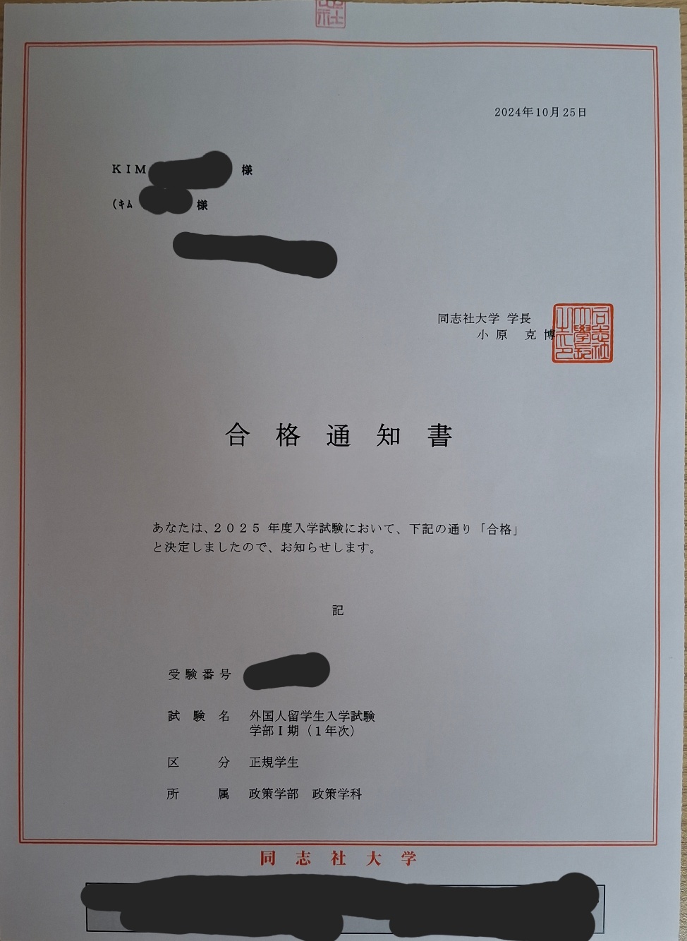 키시카와 선생님과 2월부터 9월까지 기술수업 및 지망이유서, 소논문, 면접준비를 함께 하였습니다. EJU 총 준비기간은 2월부터 6월까지, 총 4개월이고 이후 지망이유서 및 면접수업을 병행하면서 본고사준비를 했습니다. 준비기간이 다른학생에 비해 조금 짧아 걱정을 많이 하였지만, 다행히 전부터 목표로 했던 도시샤대학에 합격하였고 이밖에도 리츠메이칸, 칸사이 대학교 법학부에 합격했습니다.