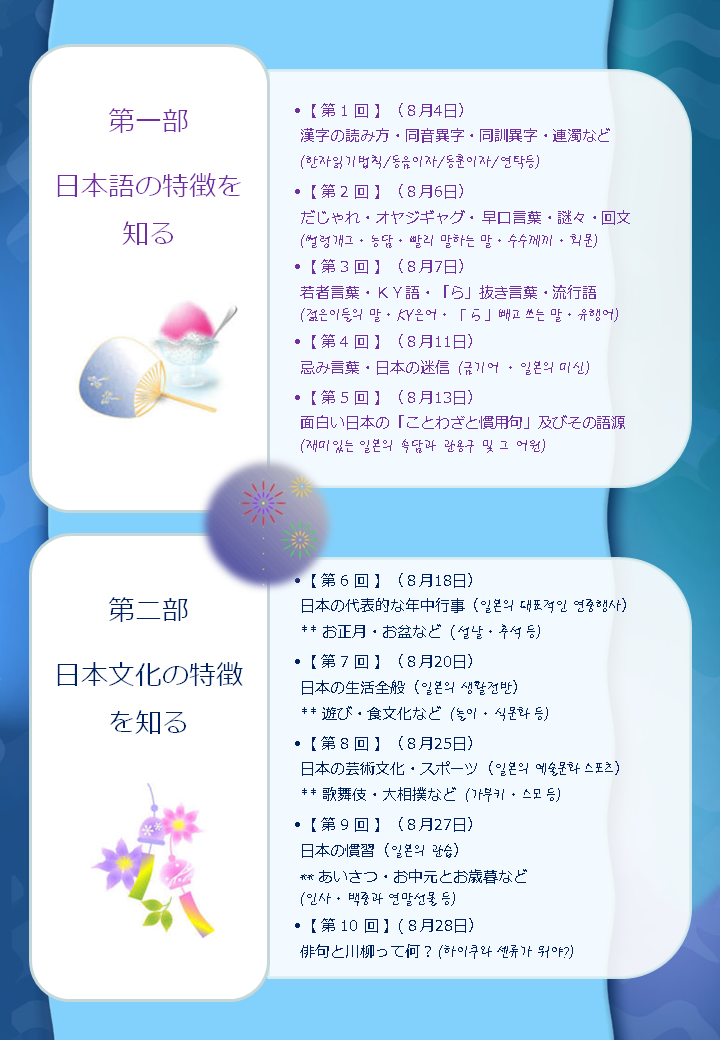(8월 방학특강) 일본언어문화특강 일정 및 내용