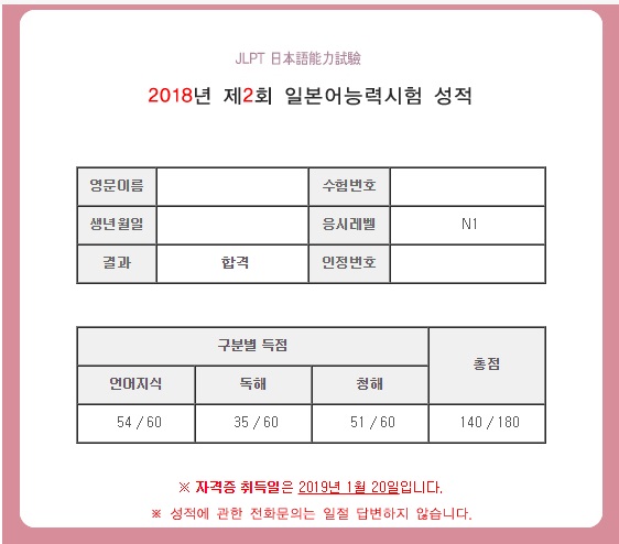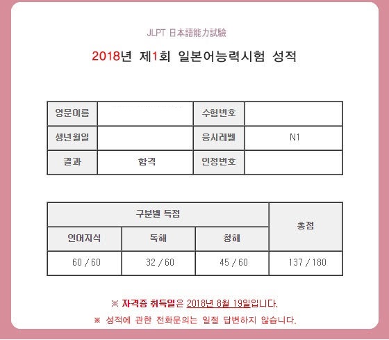 작년 이맘때쯤 군대에서 1급시험을 응시를 했지만 독해가 너무 약해 불합격을 했던 기억이 난다. 여태껏 JPT 900을 넘기기 위해서 공부를 한 바람에 읽어야 할 부분을 놓치고 말았던 부분이 원인이었던 것 같다. 작년 전역하고 나서 내가 얻어간 것은 JPT 900점대 중후반 점수였다. 그러면서 생각했다. 왜 JLPT는 만점이 안 나올까. 공감가는 사람은 갈 것이라고 믿는다. 반신반의가 너무 심해 어떻게 해서든 점수를 올리고 싶었고 인터넷을 둘러보았는데 선생님이 계셨다. YOUTUBE라든지 다양한 메채에서 이 학원에 대한 명성이 전부터 있었다는 것을 독학을 하면서 알게 되었고 그렇게 내린 결론은 이 선생님의 강의를 듣지 않으면 안된다는 믿음이였다. 이 믿음을 져버리지 않기 위해 선생님의 고득점설명회를 듣게 되었고, 바로 카운터로 달려가 결재했다. 아직도 이 날이 기억이 나는데 6월 9일. 선생님이 하신 말씀이 아직도 내 머릿속에 지워지지 않는다. 이건 내 자존심을 뭉개는 것이 아닌 ' 제자 ' 한명을 올바르게 키우시게 하려고 선생님이 하신 말씀이라고 생각한다. " 국어실력이 너무 부족하구나. " 나는 이 말에 대해 말귀를 못알아 들었고, 1학기말에 하루정도 곰곰히 생각해 보았는데 그 말의 의미를 선생님이 수업에서 증명하셨다. 이 때 나는 너무 부끄러웠다. 처음에는 전자로만 생각했는데 가면 갈 수록 후자였다라는 것을. 그렇게 3주정도 수업을 듣게 되었고, 1회차 시험을 응시했다. 그날의 감각은 아직도 잊을 수 없다. 무서울 정도로 선생님이 이거 나왔고 언어지식 푸는 시간동안 진땀이 가질 않았다. ( 우수 수강후기에 지금 올라가 있는거 (3주 수강후 합격) 나 본인이 썼으니 반드시 읽어보기 이 글을 읽기 바란다. 소름이 끼친다.) 그렇게 합격을 가져가게 되었고 그 사이에 선생님이 여름에는 7,8월 그리고 겨울은 12~2월에 걸쳐 주말에는 한자반을 하신다. ( 한자반을 수강할 생각이 있다면 이 기간을 노리기 바란다. - 그리고 앞에 한자반 수강후기도 적었으니 읽기 바란다. ) 나는 여름수업을 들었고 한번 대한민국 번역사 시험 (TCT) 에 응시해 보자고 생각해 광운대에서 아래와 같이 2급 과학기술시험을 응시하였고 , 전국에서 3명안에 드는 쾌거를 얻었다. 그 후 3개월 가량 주말반 N1수업 듣게 되었고 오늘 아래와 같은 결과가 나왔다. 이건 더이상의 변명도 할 여지가 없다. 오늘 이 결과가 결코 선생님 탓이 아닌 근본적으로 내 실력과 내 태도에 문제가 있다고 생각한다. 선생님은 수업시간에 일본어를 중점으로 가르치시면서 인성과 외적인 것들을 가르치신다. 뿐만 아니라 매일 힘드신 와중에도 우리 학생들을 위해 카톡으로 한자나 단어를 보내주신다. 선생님의 이 열정 잊지 않겠습니다. 저를 사람으로 만들어 주셔서 감사합니다. 또 연락드리겠습니다.