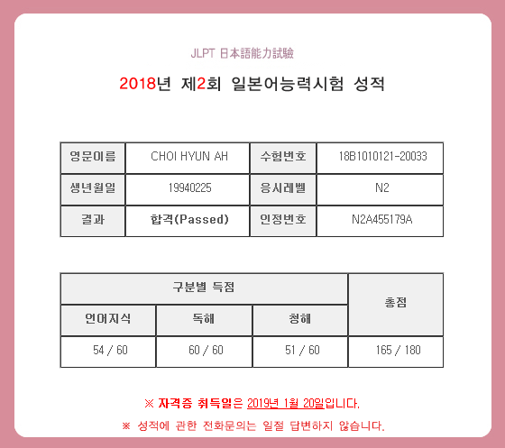 김숙경 선생님 수업 듣고 jlpt 합격했어요!