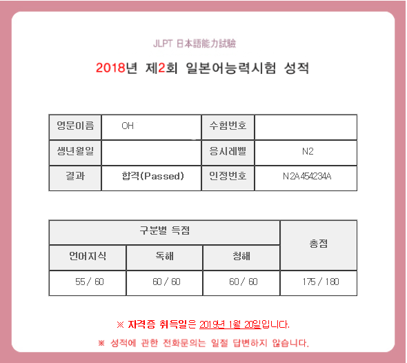 2개월만에 JLPT N2 고득점으로 합격했어요!!