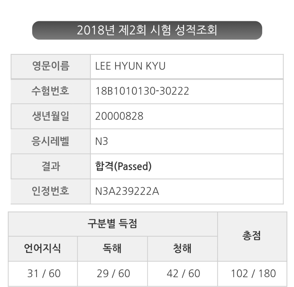 JLPT N3 합격 ∗❛⌄❛∗