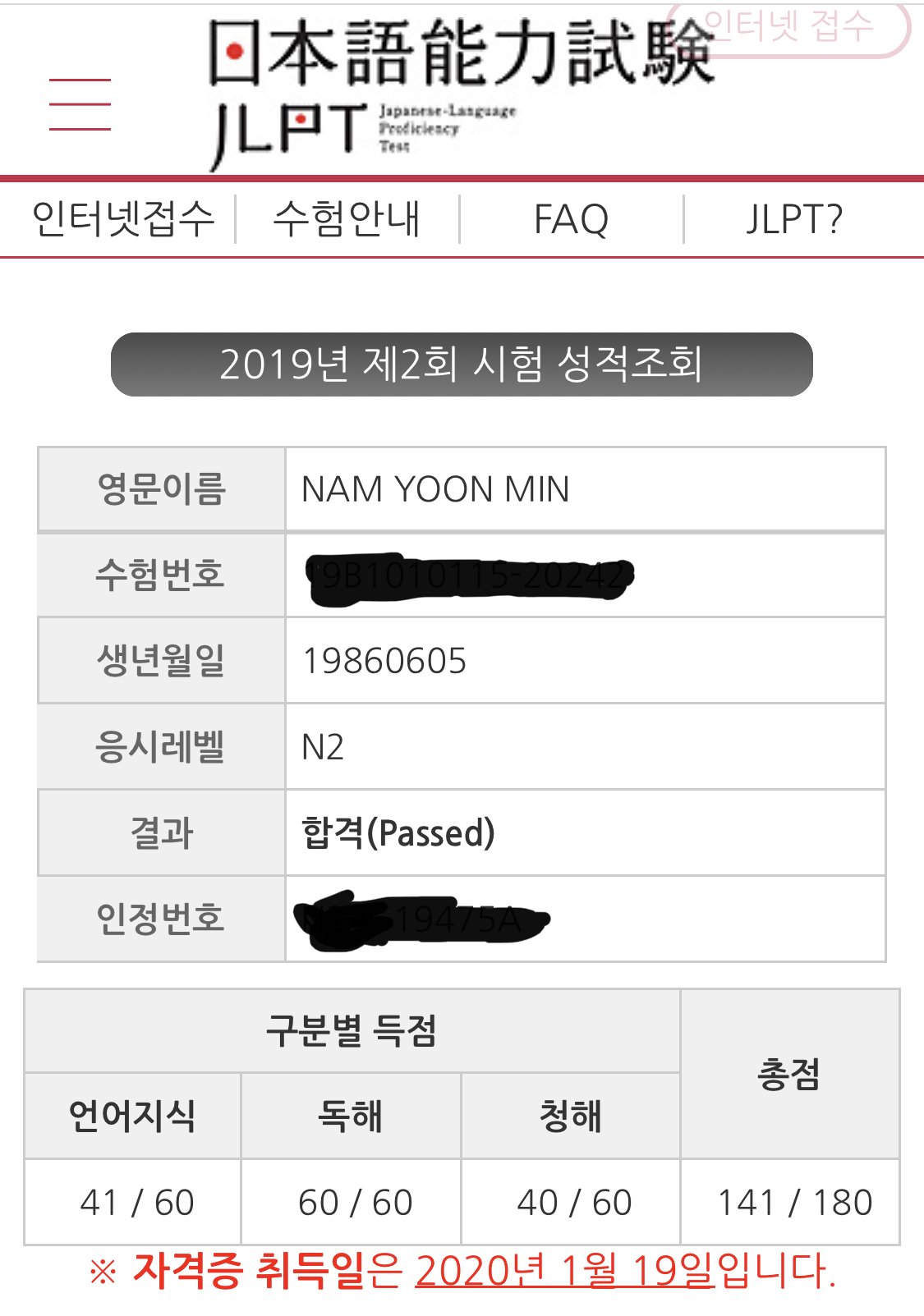 생각보다 꽤나 높은 점수로 합격했습니다.