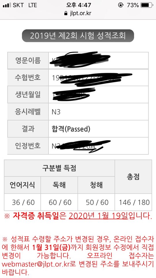 사실 JLPT외에도 하고 있는 공부가 있어, 수업시간 외에 공부는 거의 하지 못하고 숙제, 단어 시험도 거의 준비해 가지 못하였습니다. 그러나 수업시간마다 중요한 단어, 문법을 반복적으로 확인시켜 주셔서 수업시간에 듣는 것만으로 많은 공부를 할 수 있었으며, 많은 양의 기출문제, 예상문제를 풀면서 시험에 대비하면서 시간 관리, 전반적인 시험에 대한 이해를 높힐 수 있었습니다.
