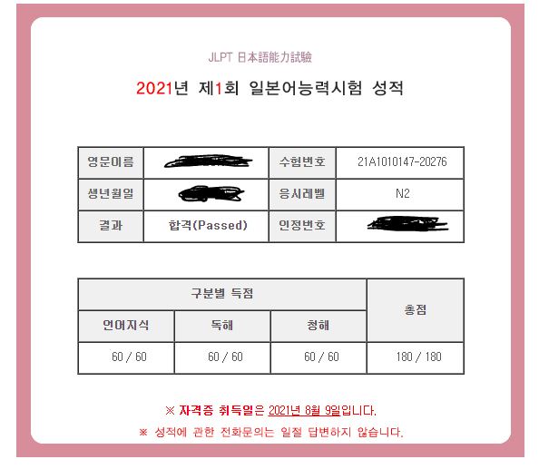 JLPT N2 3개월 만에 180점 만점으로 합격했습니다!