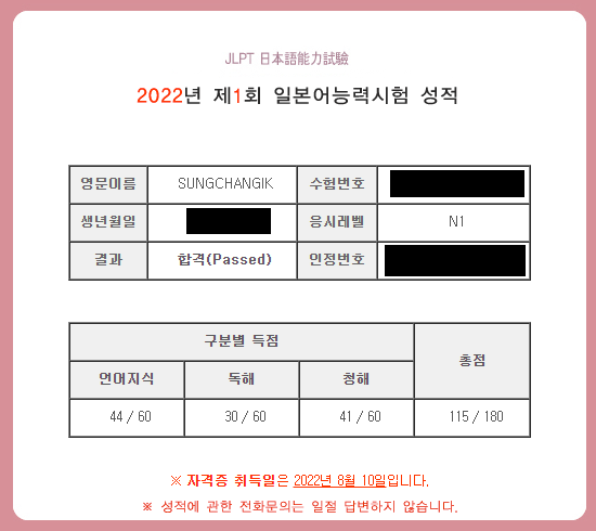 일과 공부를 병행하는 것이 쉽지만은 않았는데, 황지영 선생님 덕분에 수월하게 N1에 합격할 수 있었습니다. 선생님께서 제공해 주시는 자료의 반 이상만 숙지하더라도 충분히 합격할 수 있으리라 생각합니다. 물론 모두 숙지하면 만점도 가능할 것 같습니다. (저는 반 이상만 숙지한 정도라 높은 점수를 못 받았지만요..^^;)