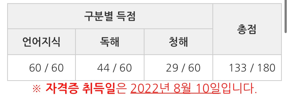 언지: 그래도 지영쌤이 언지가 그나마 가장 공부한 만큼 점수나오고 올리기 쉬운? 빠른? 파트라고 해주셔서 지영쌤이 주신 day1-30단어, 시험에 나왔던/나올거 같은 문형집을 통째로 달달 외웠습니다. 물론 주신 자료 다 ~ 완벽하게 외웠다고는 못하겠지만 이동시간/회사 저녁시간때 틈틈이 보려고 노력했습니다! 그래도 시험볼때까지만해도 뭔가 부족한 느낌이 들었고 제가 모르는 단어가 나오지 않을까 걱정 많이했지만, 만점을 받았고, 아직도 믿겨지지않습니다!