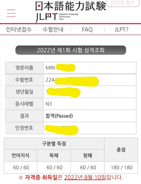 천송이쌤의 열정, N3만점 감사합니다.