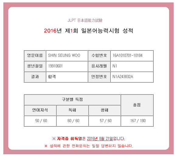 김성준 선생님과 함께 달린 JLPT N1, 좋은 점수로 당당히 합격했습니다.