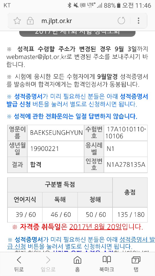 어쨌든 예상보다 좋은 성적이 나와서 기분이 너무 좋습니다.